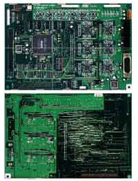 BF-Tristar enabled the world first simultaneous inspections on double sided board. 10ยต resolution inspection on both sides of M size board proposes new style for inspection at final stage of production.