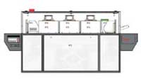 With a capacity of 2.7m2/h and a use-tracing relation of 1:1, the manufacturing of medium up to bigger series is the optimal application for the 7 ZCR.The system is equipped with a grid belt conveyor or alternatively with a duplex conveyor. The duplex conveyor combines the advantages of the pin chain conveyor and the grid belt conveyor in one machine. The pin chain conveyor supports the automatic in-line production. The grid belt can be used for small separated PCBs and acts also as a middle support for wide boards while using the pin chain conveyor The heating chamber of the 7 ZCR has 4 heating zones, 2 cooling zones and additional bottom heat over the first 4 zones. The heating zones are separated like the following: